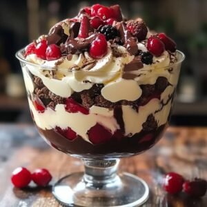Imagine sinking your spoon into layers of rich, fudgy brownie chunks, silky whipped cream, and luscious chocolate pudding, all nestled together in a tall glass dish. Each bite is a swirl of textures—gooey, fluffy, creamy—with just enough crunch from crushed chocolate cookies or toffee bits on top. The flavors? Think warm brownies straight from the oven, cool pudding with that nostalgic, cozy hug of cocoa, and cloud cloud-like whipped cream that melts the moment it hits your tongue. Honestly, it’s the kind of dessert that stops conversation—people go quiet because they’re too busy swooning.